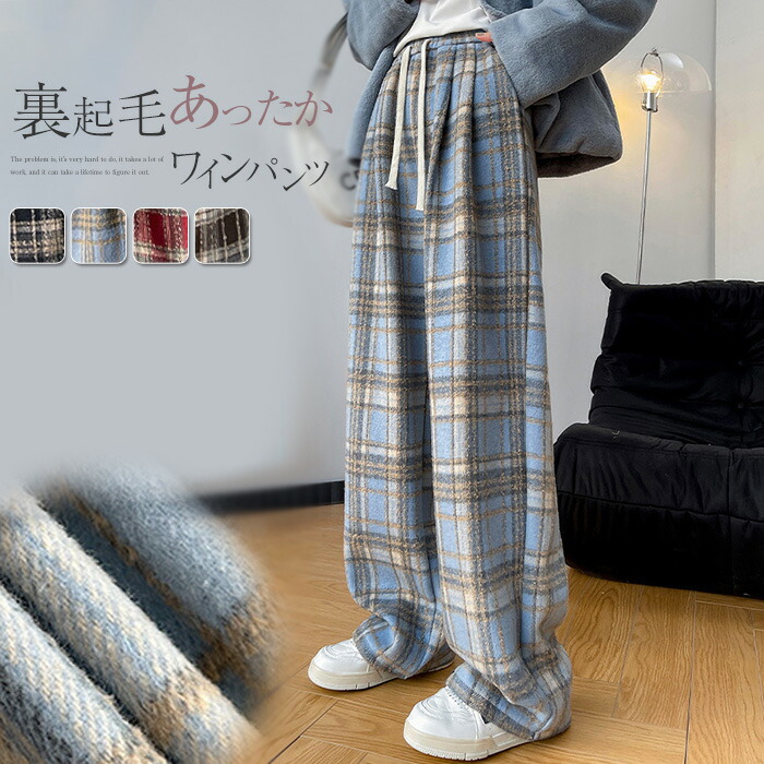 ワイドパンツ レディース チェック柄 裏起毛 秋 冬 春 ガウチョパンツ パンツ 体型カバー ロングパンツ 大きいサイズ ボトムズ チェック 着痩せ ゆったり お洒落 ワ 美脚