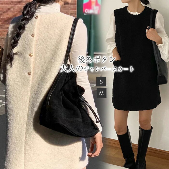 ワンピース 春 秋 レディース ツイード調 後ろボタン ライン ジャンパースカート 膝丈 ジャンスカ ワンピース ノースリーブ 重ね着 レイヤード 無地 体型カバー 可愛い 大きいサイズ