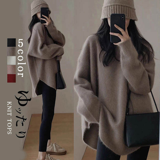 ニット レディース トップス 長袖 ふわふわ セーター 無地 長袖セーター ゆったり クルーネック 大人 体型カバー カジュアル おしゃれ 秋冬 新作 お尻が隠れる