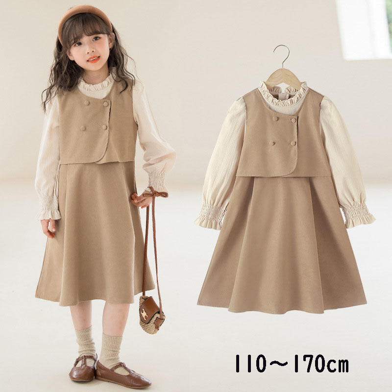 子供服 キッズ ワンピース 女の子 子供 ドレス 長袖 子ども服 ベストワンピース 無地 春 秋 冬 裏起毛有 キャミソールワンピース 卒園式 卒業式 フリル フォーマル キッズワ 重ね着