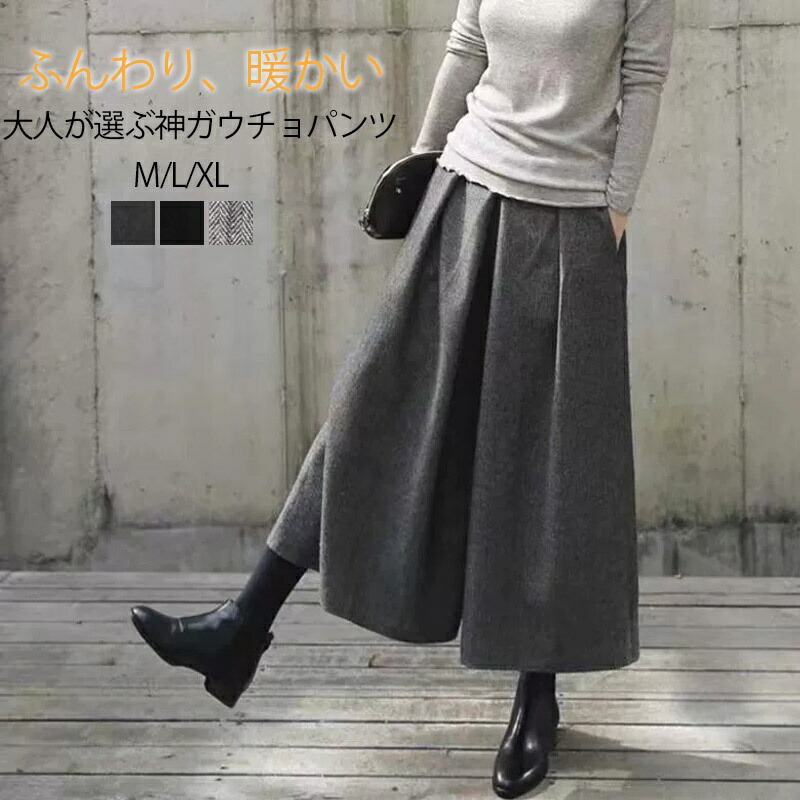ワイドパンツ レディース ガウチョパンツ 秋冬 パンツ ワイド ガウチョ 大きいサイズ ロングパンツ ボトムス 冬 秋 春先 ボリューム ハイウエスト ゆったりシルエット 大人 ストレッ ウエストゴム