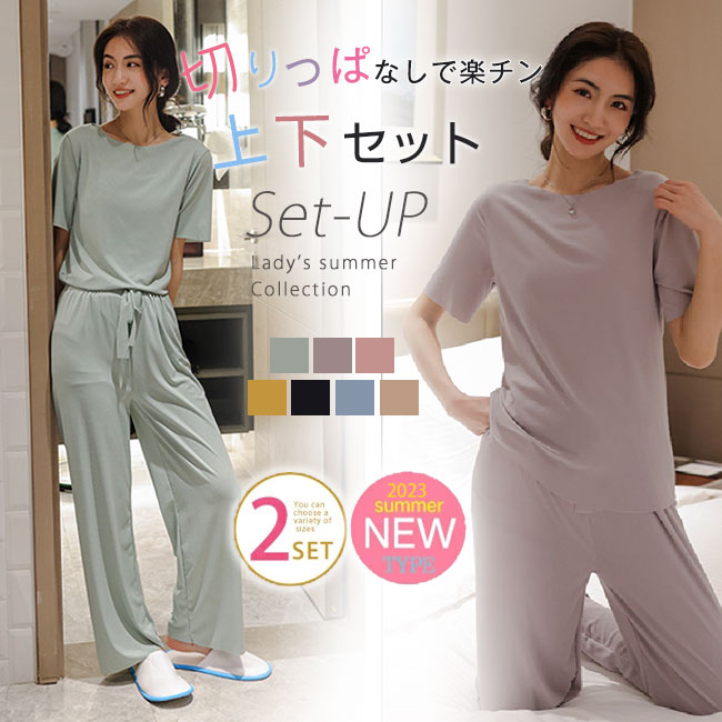 先行 ルームウェア 上下セット 半袖tシャツ 長ズボン 母の日 プレゼント ワイドパンツ レディース 春夏 パジャマ カットソー パステルカラー かわいい おしゃれ 薄手 やわらか 部屋着 ゆったり