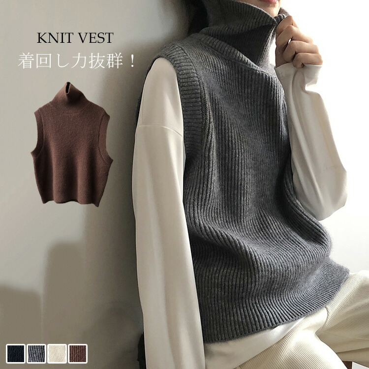 ニットベスト レディース 秋冬 ハイネック ニット ベスト タートルネック トップス ノースリーブ 大きいサイズ リブ ニットトップス セーター 重ね着 ニットセーター アウター 無地 ショー お洒落