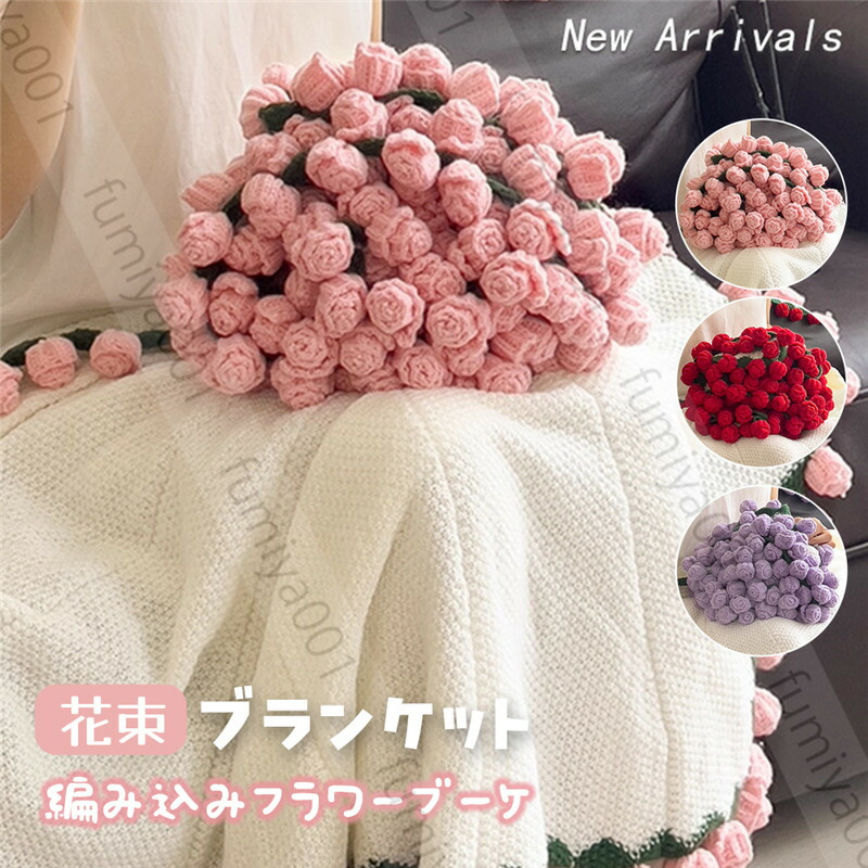 ブランケット ローズ 花束 大判 掛け布団 冬 フラワーブーケ ひざ掛け 編み込み 毛布 膝掛け オシャレ 車中泊 保温 洗える 洗濯可 ピンク パープル 誕生日 バレンタインデー クリスマス レッド