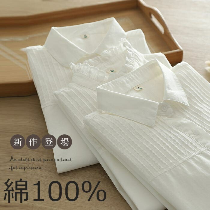 シャツ レディース 長袖シャツ 綿シャツ 春 トップス ホワイトシャツ 長袖 コットン 白シャツ 折襟 シャツブラウス 柔らか コットンシャツ 無地 丸襟 無地シャツ 通気性 体型カバー フ シンプル