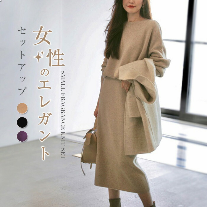 セットアップ レディース 秋 冬 セーター ニット スカート スカートスーツ 2点セット タイトスカート スカート ロング丈 トップス 長袖 春 秋 冬 ゆったり