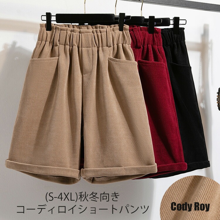 きれい見えコーデュロイワイドショートパンツ コーデュロイパンツ レディース 秋冬 ショートパンツ ハーフパンツ 大きいサイス 体型カバー ブーツと相性いい 2 3 4