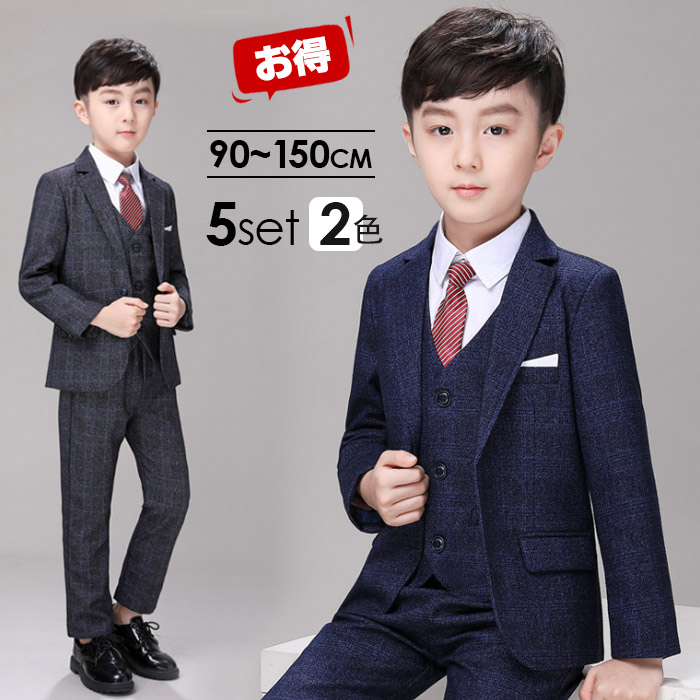 20%OFFクーポン シャツあり 子供スーツ 男の子 スーツ お得な5点セット フォーマル 入学式 ネクタイ付き 子供服 卒業式 150 超人気 キッズ 紳士服 七五三 こどもスーツ ジュニア