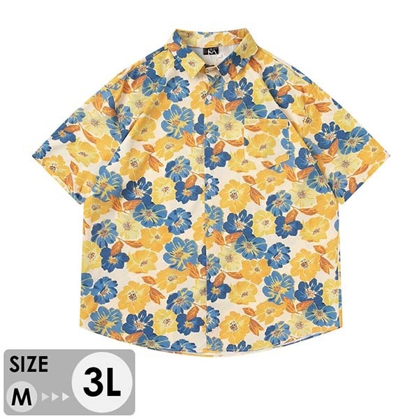 アロハシャツ レディース アロハ柄 半袖 葉柄 花柄 男女兼用 上着 夏 シンプルデザイン ハワイアン 夏物 開襟シャツ 日焼け止め カジュアル オープンカラー レトロ イエロー 3