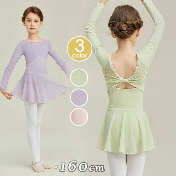 レオタードスカートセット バレエ レオタード スカート付き バレエレオタード 長袖 女の子 子供 子供用 子供サイズ キッズ ジュニア ダンス 体操 バレエ用品 シンプル 練習服 レッスン着 新体操