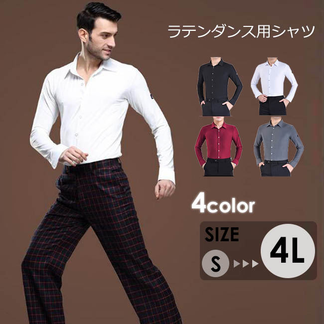 メンズ ラテンダンス用シャツ 男性用 ダンス衣装 上着 ダンスウェア 社交 練習着 ワルツ 白 黒 グレー ワインレッド S-3XLチャチャチャ ルンバ 長袖 ジャイブ ラテン ラテンダンスシャ 半袖