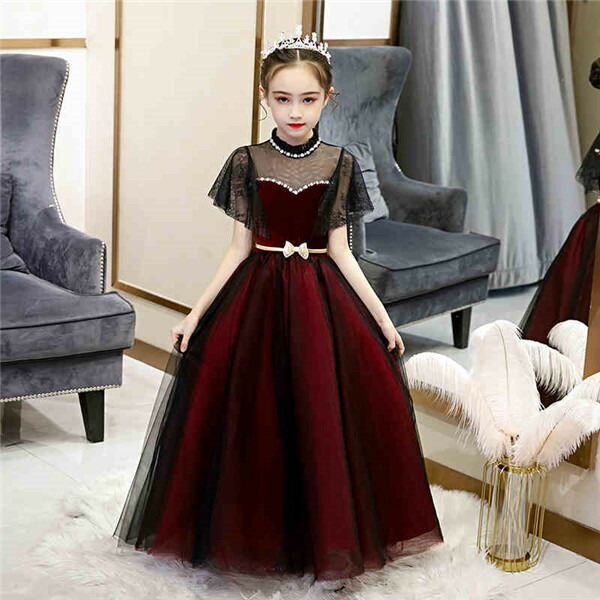 子供ドレス ジュニアドレス フラワーガール ベールガール リングガール パーティードレス キッズ ドレス お姫様 ロング丈 子どもドレス 女の子 ピアノ 発表会 ワインレッド 100 1 ステージ衣装