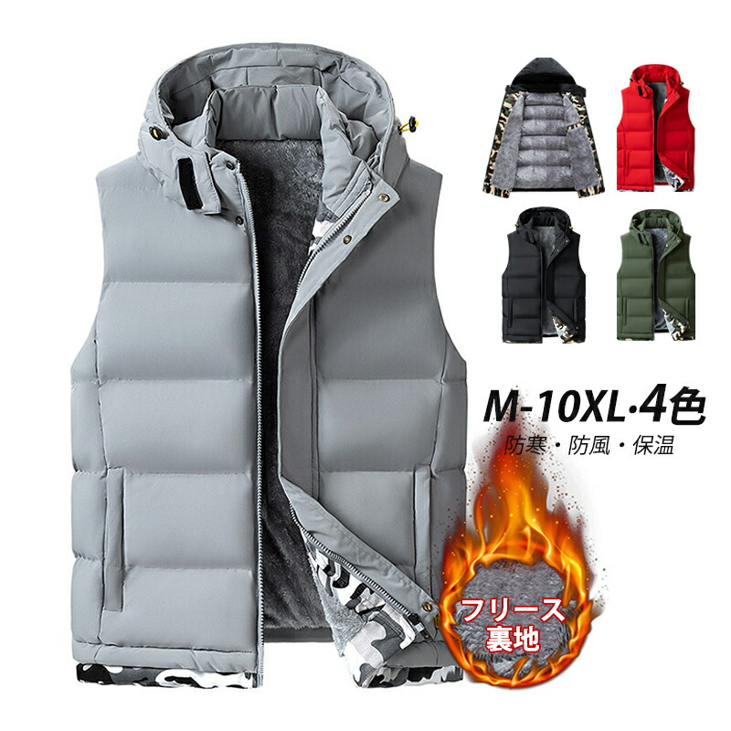 ベスト 中綿 メンズ おしゃれ 暖かい 裏起毛 袖無し フード付き 冬ベスト 20代 30代 40代 男性着 厚手 軽量 通勤 釣り 仕事 作業着 冬服 S M L 2XL 3XL 大きいサイズ XL