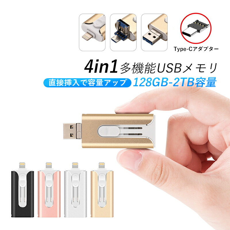4in1 USBメモリ 128GB 大容量 256GB バックアップ 高速フラッシュ スマホ用 USBフラッシュドライブ タイプc iPhone iPad PC Mac iOS対応 i Android