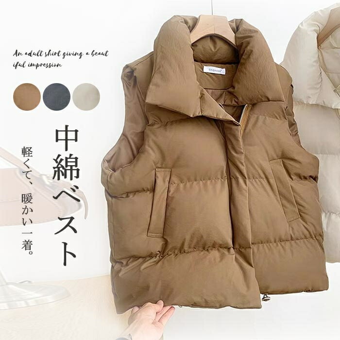 中綿ベスト レディース ベスト キルティングベスト アウター 中綿ジャケット ノースリーブ コート ジャケット 中綿コート 軽量 秋冬 中綿 防寒 キルティングコート スタンドカラ あったか