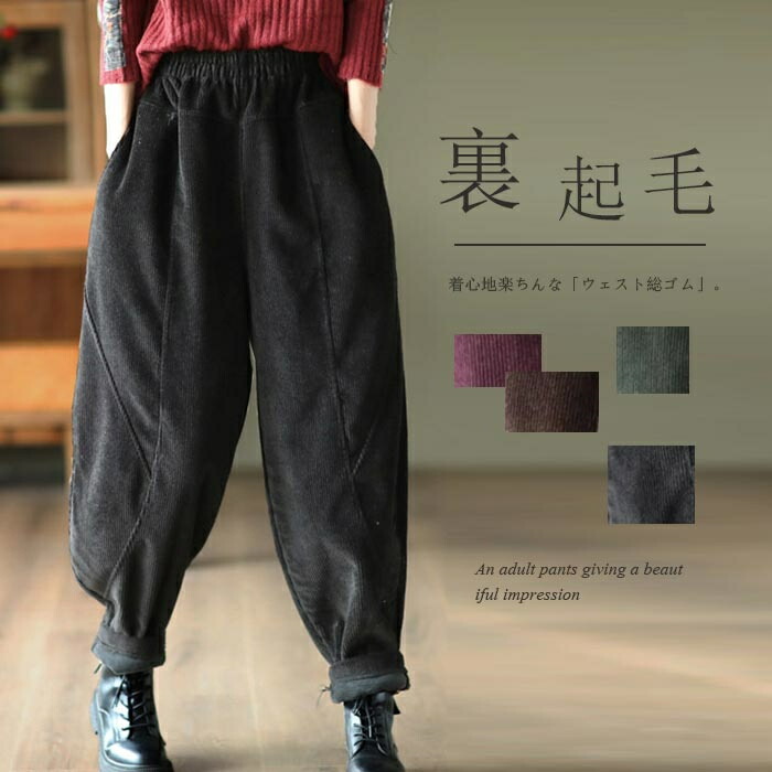 バルーンパンツ レディース 裏起毛 コーデュロイ 秋冬 サーカスパンツ 冬 コーデュロイパンツ ボトムス パンツ コクーン ウエストゴム ワイドパンツ テーパードパンツ サルエルパンツ ロングパンツ