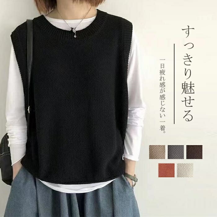 ニット ベスト レディース 冬 プルオーバー ニットベスト ジレベスト 可愛い おしゃれ 着回し トップス 体型カバー ノースリーブ シンプル カジュアル
