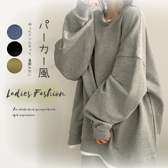 パーカー風 長袖 スウェット レディース トップス ゆったり 春秋物 体型カバー カジュアル 着痩せ リラックス お洒落
