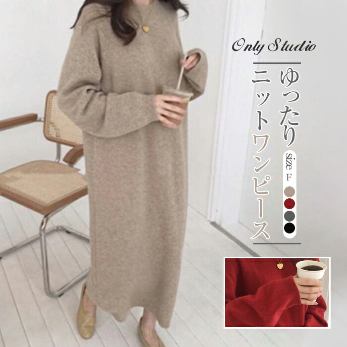 メール便配送無料 ニット ワンピース 長袖 ロング ワンピース ロング セーター セーター ニットワンピース レディース 春 秋 冬 カジュアル ニット 秋 無地 シンプル オシャレ