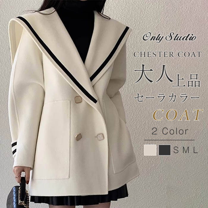 セーラーコート セーラーカラー コート レディース アウター ジャケット ミドル丈 セーラー襟 ラシャコート ポケット ワイドカラー おしゃれ エレガント 大きめ きれいめ 可愛い シンプル 無 大人
