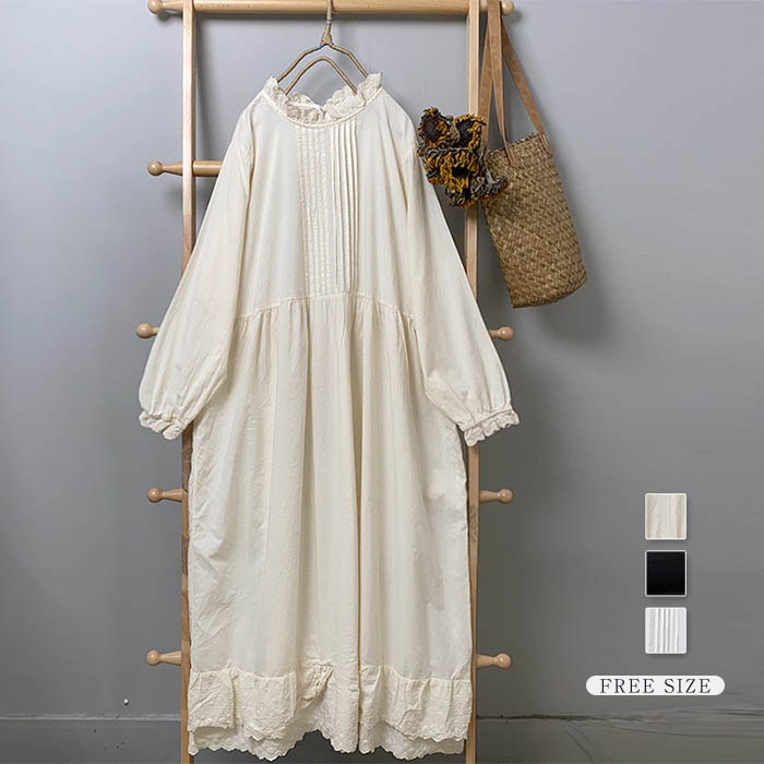 リネン ワンピース レディース ロング 秋 春 ギャザー 切り替え フリル ナチュラル コットン 長袖 ロングワンピース フレアワンピース リネンワンピース ゆったり 無地 シンプ 大きサイズ