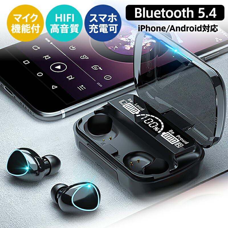 ワイヤレスイヤホン Bluetooth 5.4 iPhone Android ノイズキャンセリング 小型 軽量 LEDディスプレイ 残量表示 Siri対応 Hi-Fi高音質 SBC対応 低 イヤホン