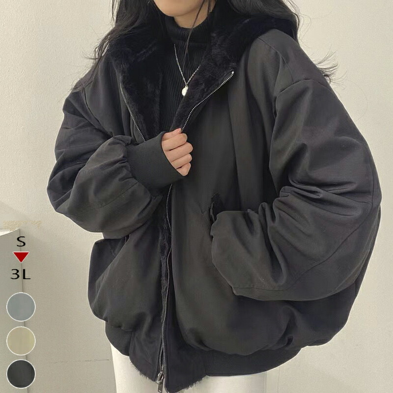 リバーシブル フード付き ボアブルゾン 裏ボア ボア ジャケット レディース 長袖 大きいサイズ アウター リラックス カジュアル ボアジャケット ボアパーカー 秋 冬 ゆっ 防寒コート
