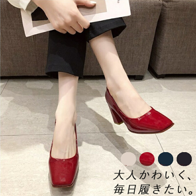 パンプス 痛くない 歩きやすい 走れる 楽 スクエアトゥ チャンキーヒール ローヒール 太ヒール 8cmヒール 脚長 仕事 オフィス 春 通勤 結婚式 二次会 パーティー 卒園式 黒 白 靴 入学式