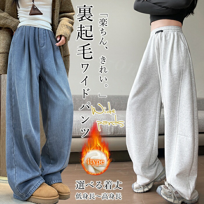 冬限定 裏フリース 裏起毛ワイドパンツ 暖かい あったか 保温 ワイドデニム デニムパンツ 秋新作 秋冬 ウエストゴム レディース ボトムス カシュアル ゆったり ハイウエスト ジーンズ 体型カバー
