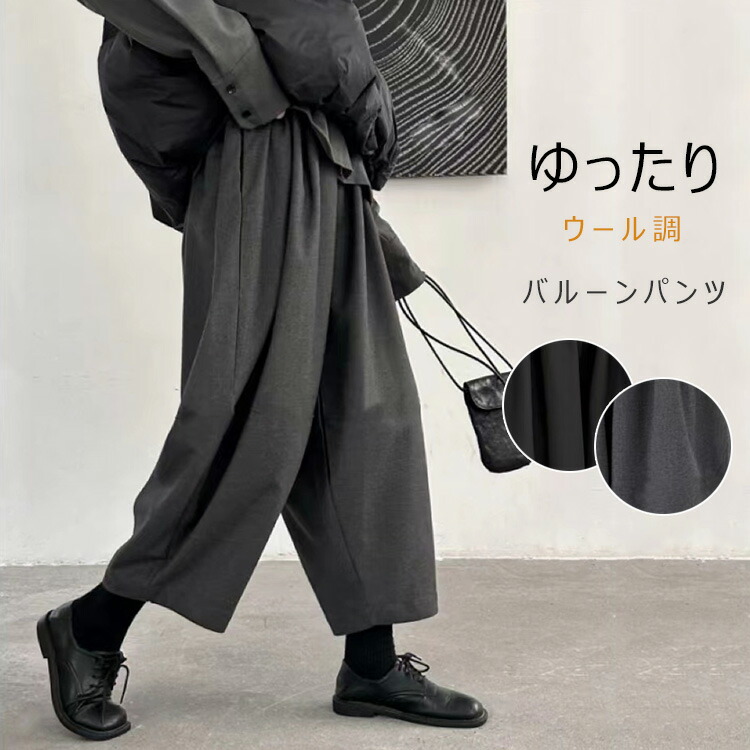 レディース 秋冬 ウール調 パンツ 九分丈 コクーンパンツ 大きいサイズ ゆったり 体型カバー バルーン 九分丈パンツ 秋 冬 フェイクウール サルエルパンツ ワイド サーカスパンツ ウールパ 9分丈