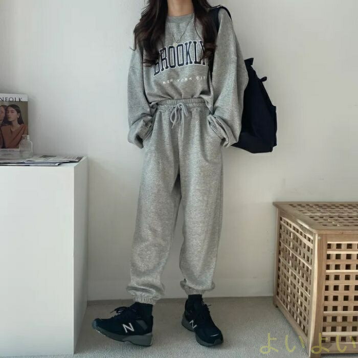 セットアップ レディース スウェット 上下セット プリント 可愛い カジュアル ゆったり 春秋 冬 大きいサイズ 二点セット