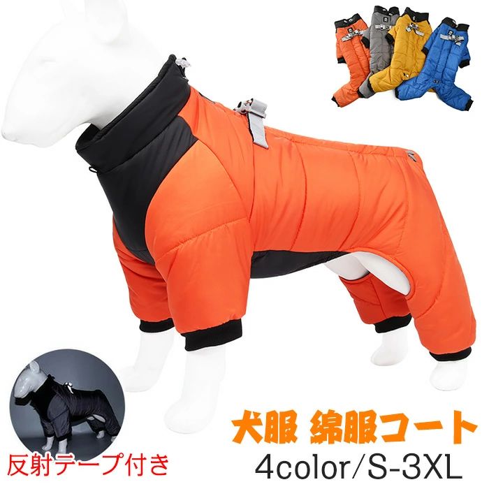 犬服 冬 綿服コート ジャケット ダウンベスト風ジャケット背中開き 反射テープ付き ハーネス付き お散歩お出かけ 軽量 四つの足 厚い 防寒 撥水 一体型綿入れを牽引する