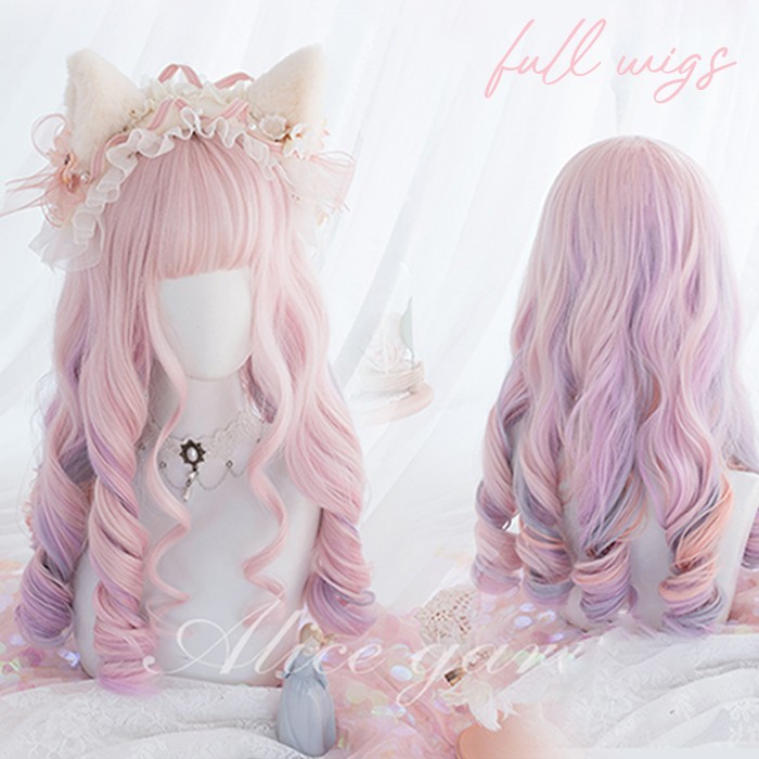 ウィッグ ピンク レディース フルウィッグ ロング 巻き髪 ぱっつん前髪 前髪あり 可愛い かわいい 大人用 コスプレ ロリータ ゴスロリ コスチューム 原宿風 仮装 かつら wig Loli 超自然
