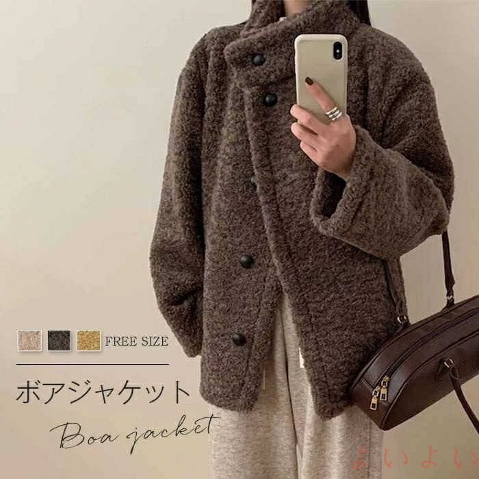 ボアコート ジャケット レディース ブルゾン ボアジャケット アウター コート 上着 トップス 羽織り 長袖 スタンドカラー もこもこ 大きいサイズ ゆったり ボア