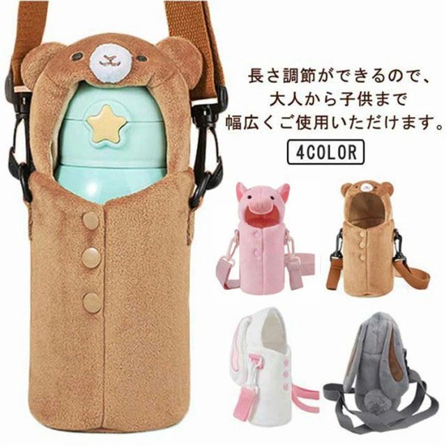 水筒カバー 500ml用 ボトルカバー 弁当箱 水筒 子供用弁当箱 水筒 水筒 コップ 水筒ケース 人気 白色ウサギ グレーウサギ クマ ブタ 350ml 500ml