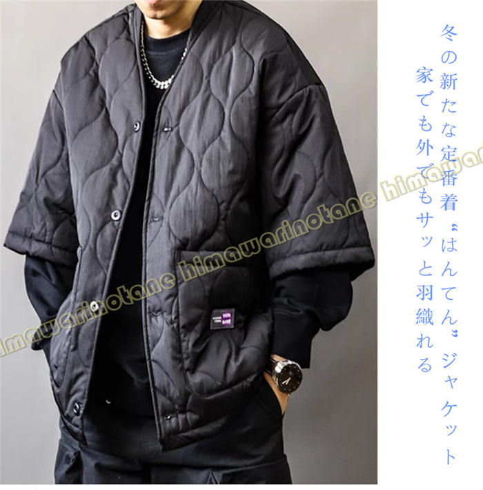 “はんてん”の形状 防寒ジャケット メンズ 中綿入り 羽織り 五分袖 ダウンコート 冬服 防寒着 カジュアル服 羽毛 通勤 お出かけ オシャレ 暖かい 男性用 外出着 アウター キルテ 秋冬物