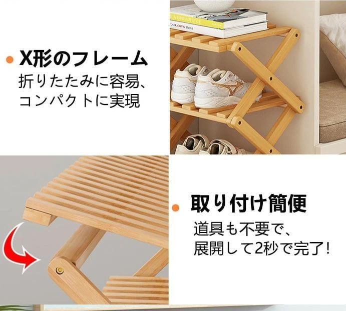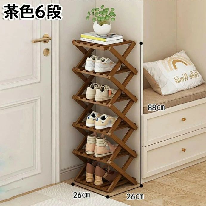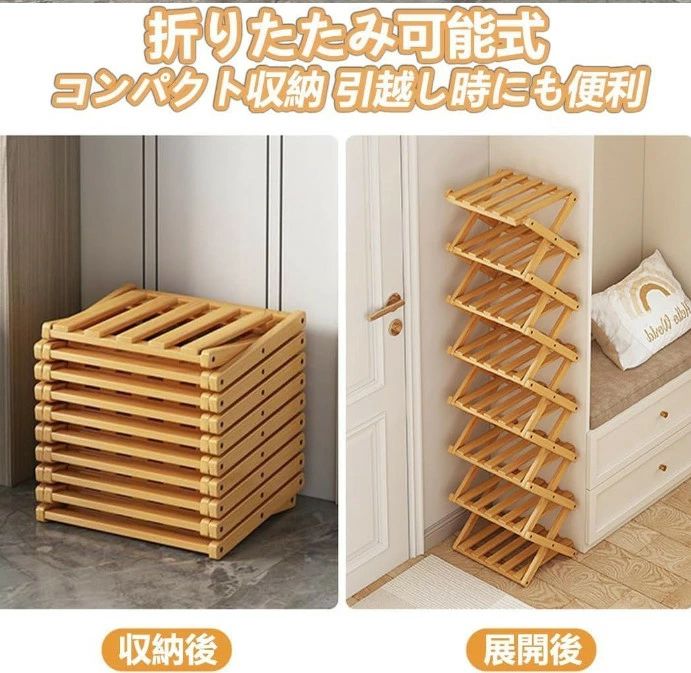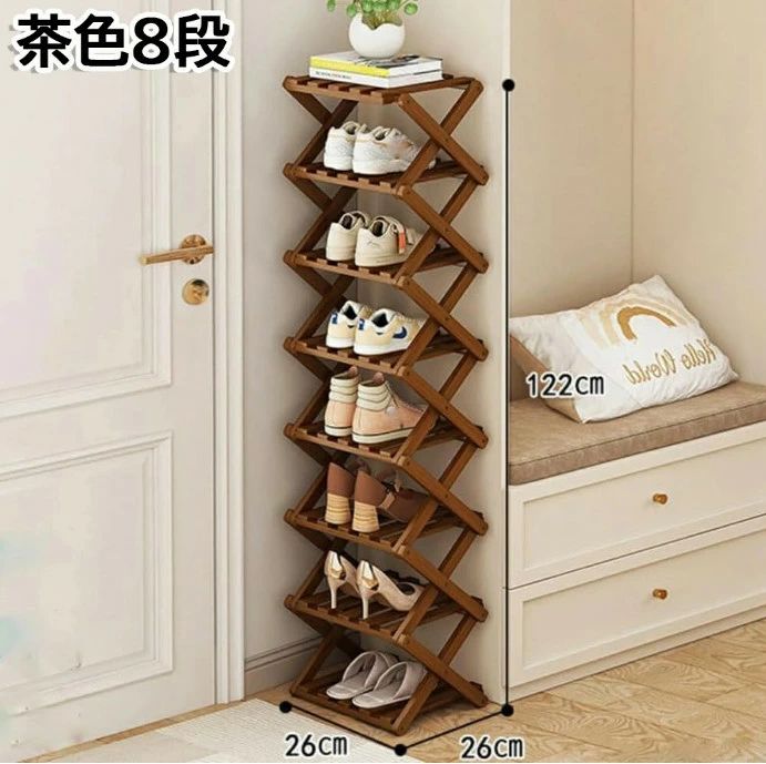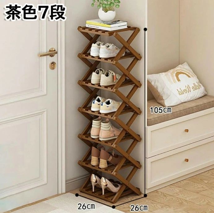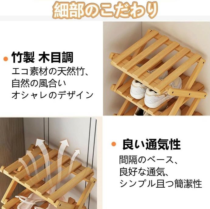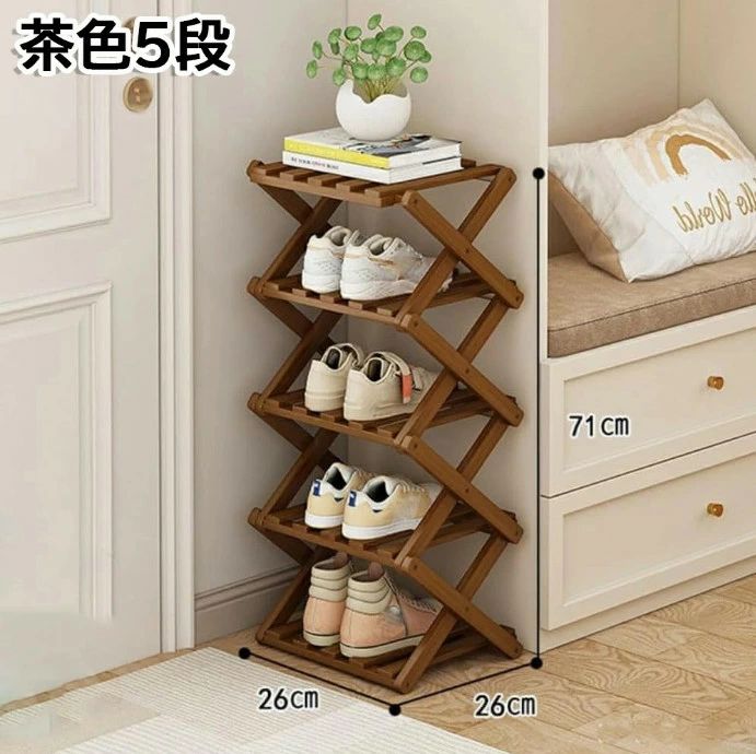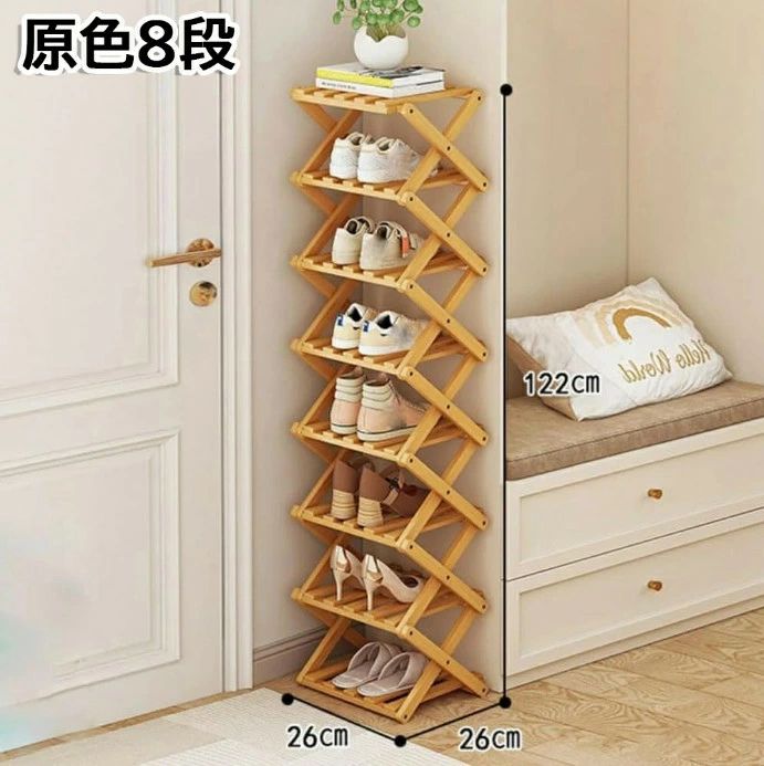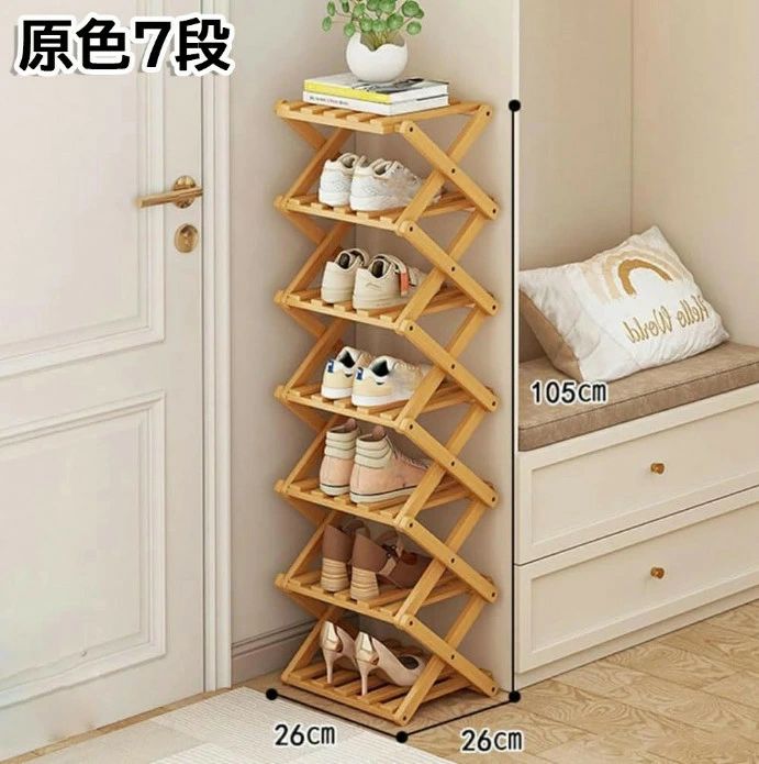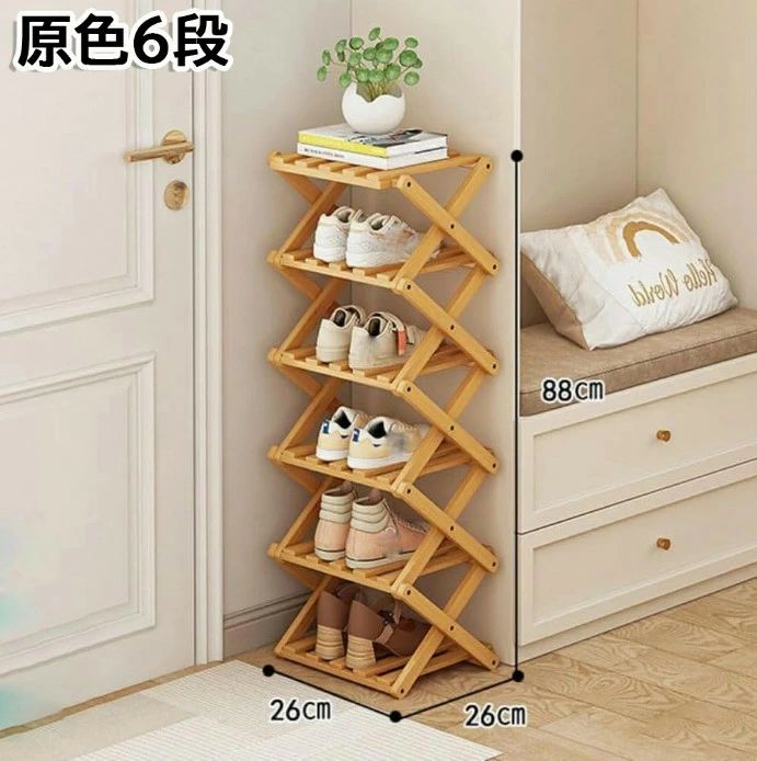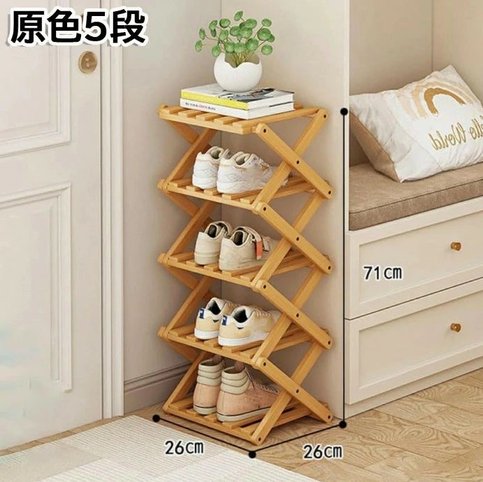 シューズラック 玄関 スリム 靴棚 折りたたみ可能 竹製 木目調 シューズ ラック スリッパ 収納棚 省スペース コンパクト おしゃれ 幅26cm 奥行26cm ひとり暮らし すき間