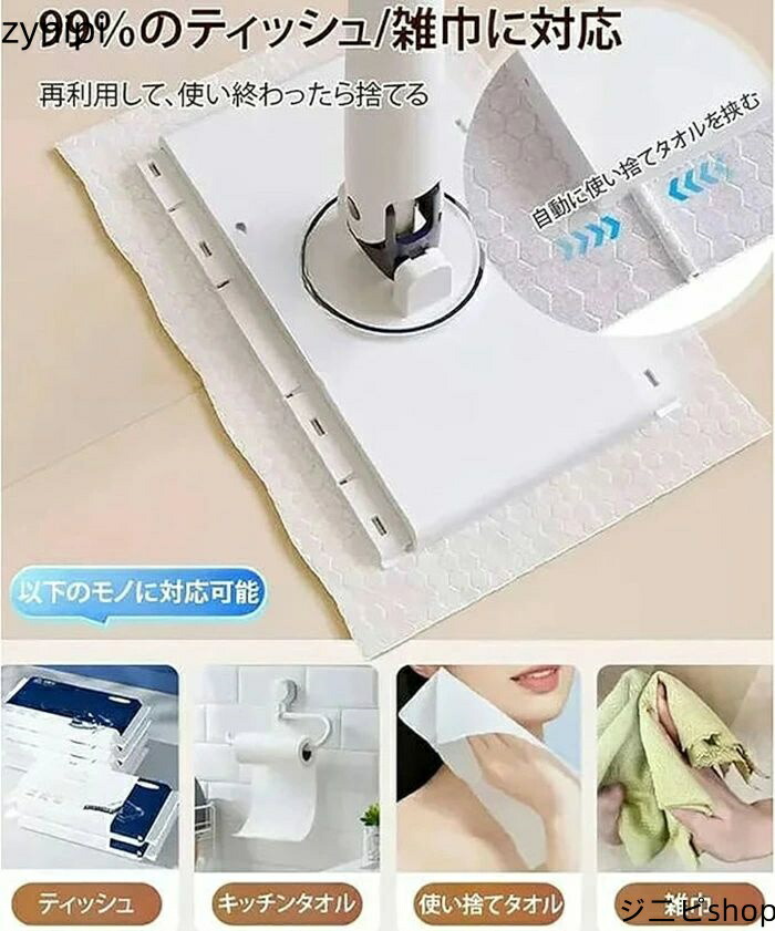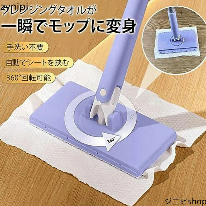 自動で雑巾を挟むモップ、ペーパータオル掛けフローリングモップ 洗面タオルを自動で挟むモップ 乾湿両用モップ 汚れないハンドモップ 全自動タオルモップ 自動モップ レイジーモップ 自動で雑巾を挟むモップ