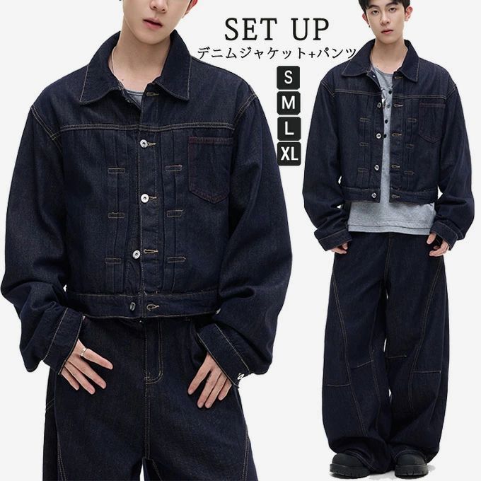 デニムセットアップ デニムパンツ メン コート ジャケット 新作 ジャケット パンツ セットアップ S M L XL 2XL