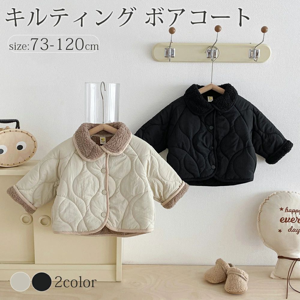 裏起毛 ベビー パイピング キルティング ブルゾン ボアコート くすみカラー ボアジャケット カジュアル キッズ コート アウター