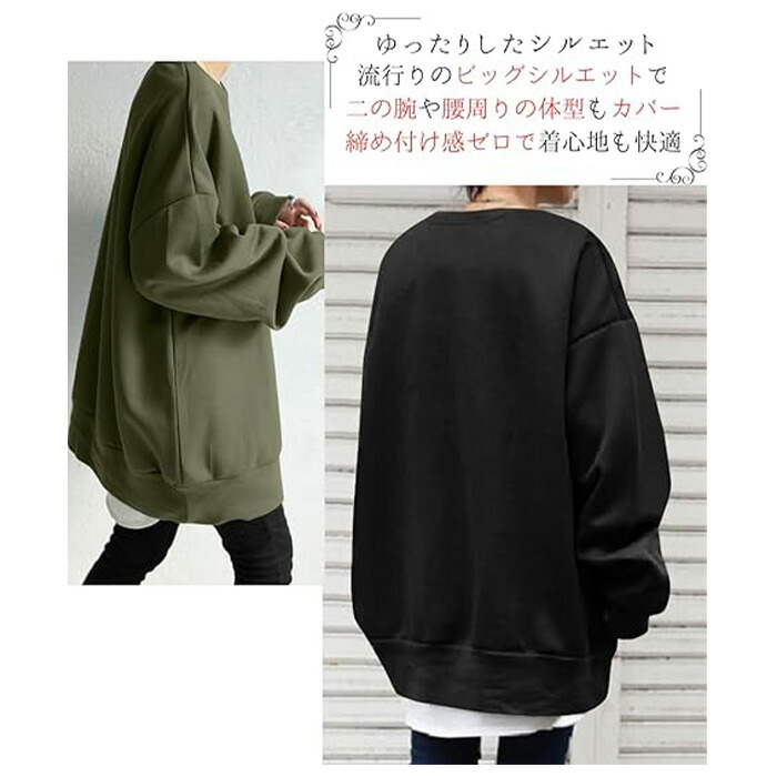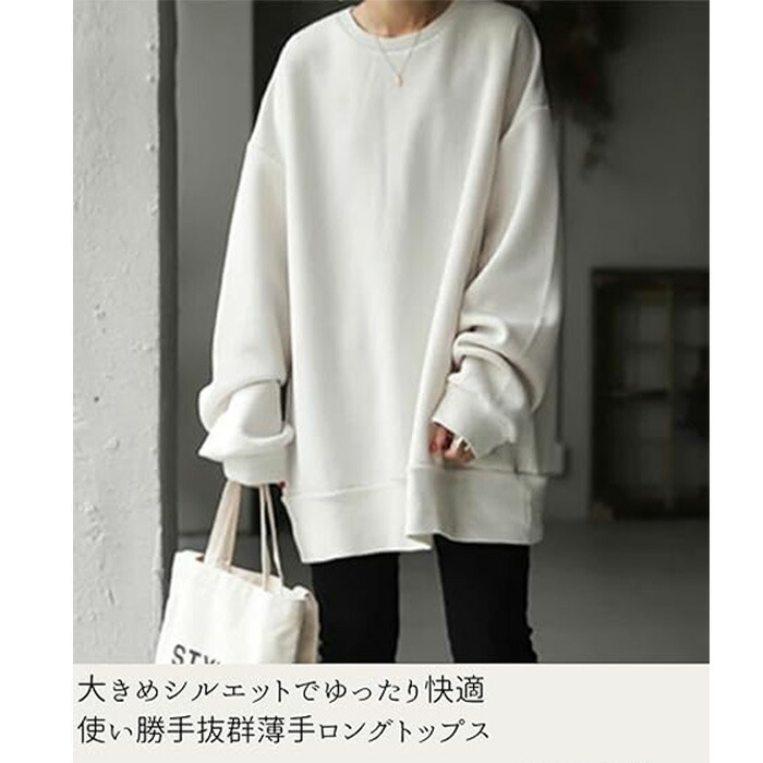 定番ゆったりシルエット ロングトレーナ トップス スウェット トレーナー 特集 ブラック グレー ブラウン ライトブルー ベージュ グリーン S M L XL 2XL 3XL 4XL 5XL