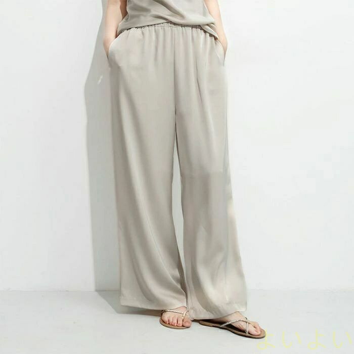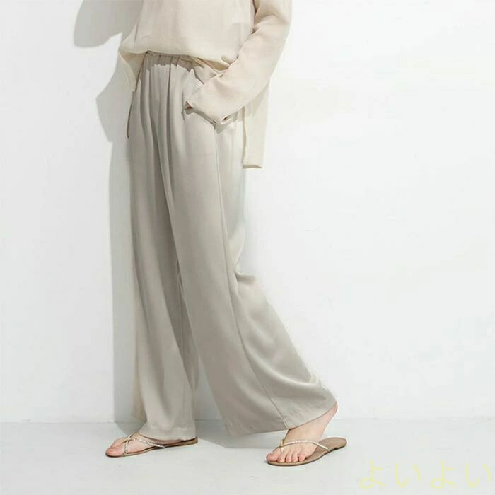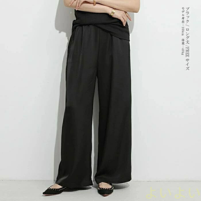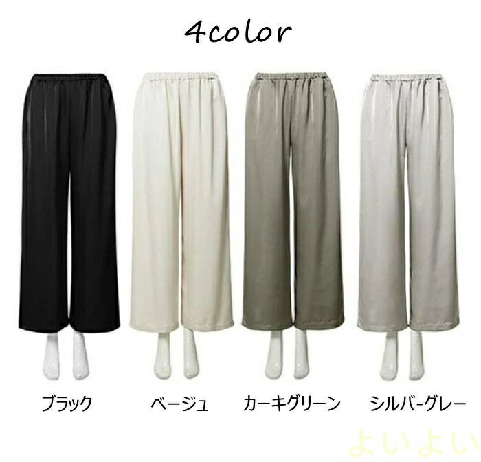 パンツ レディース ワイドパンツ サテ レディースファッション 超目玉商品 ブラック ベージュ カーキグリーン シルバーグレー M L