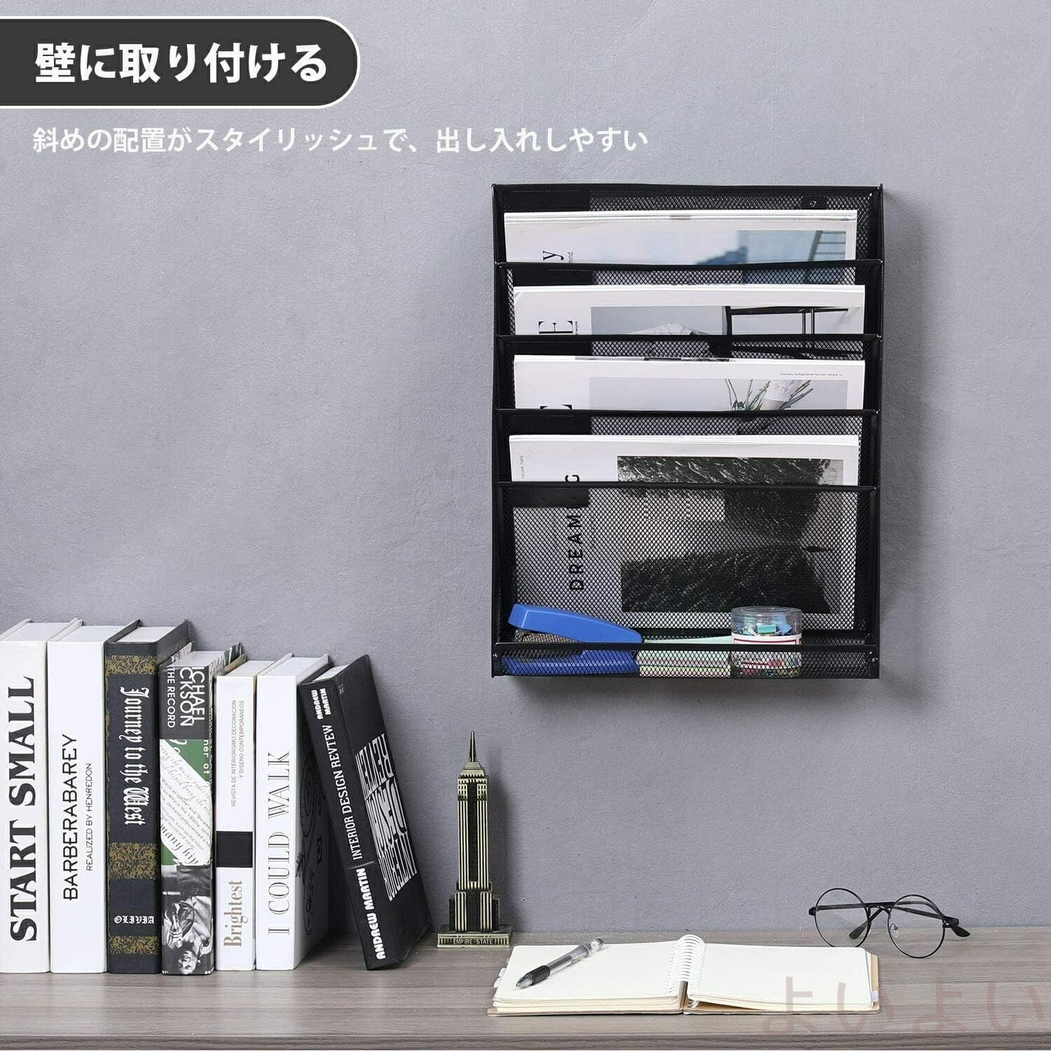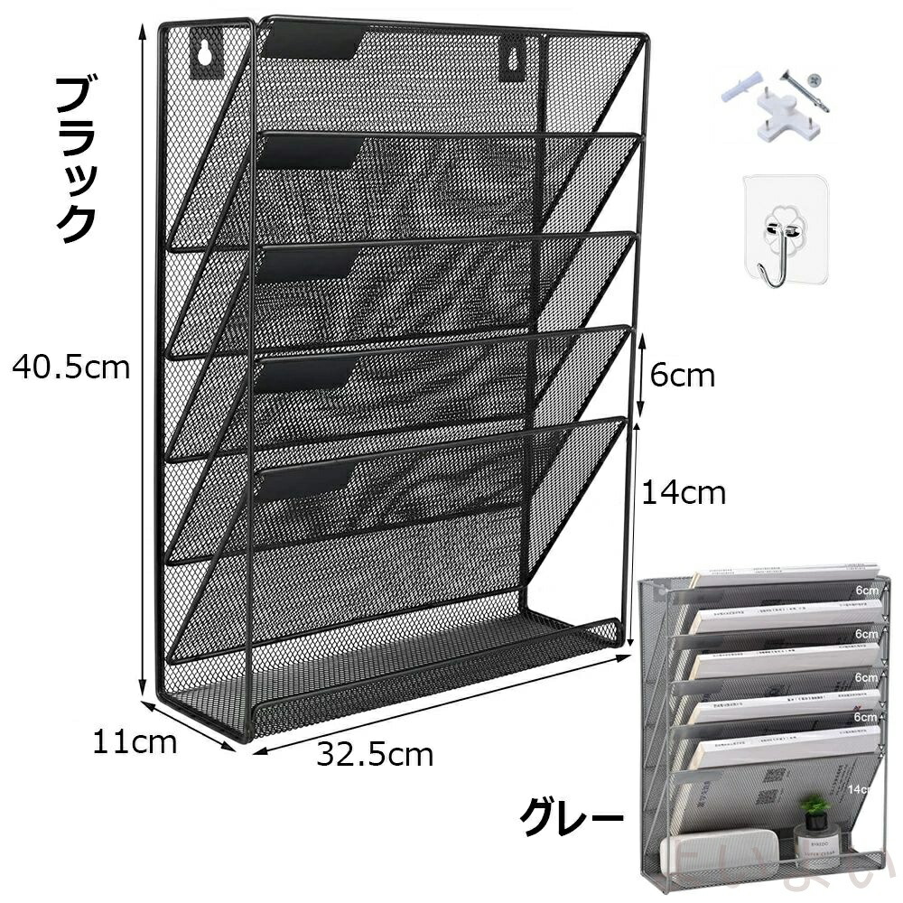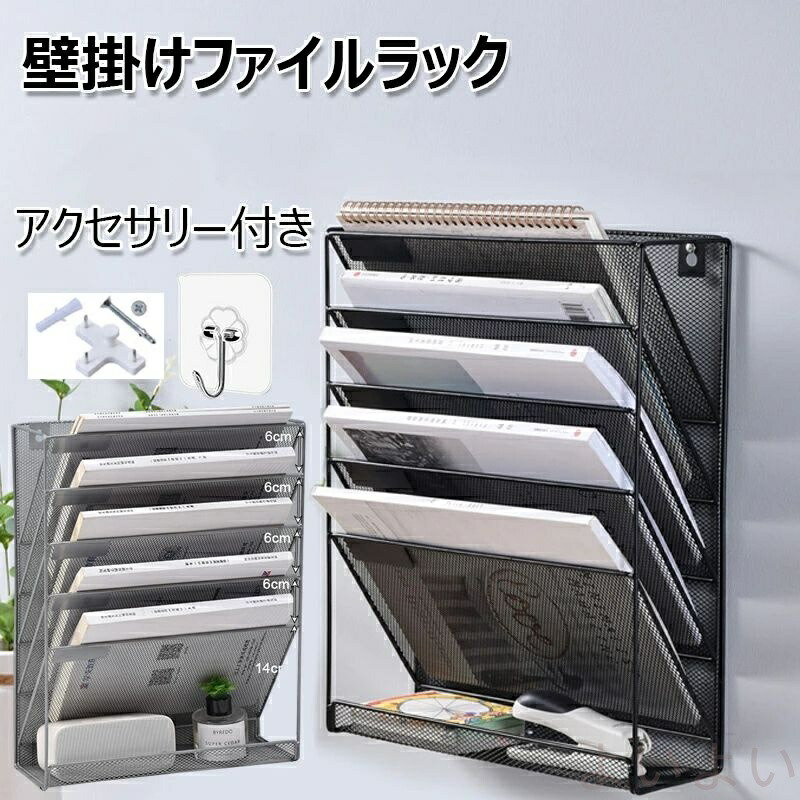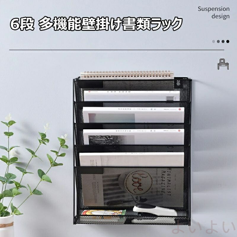 壁掛けファイルラック 6段 多機能壁掛 日用品雑貨 文房具 手芸 続々登場 ブラック グレー