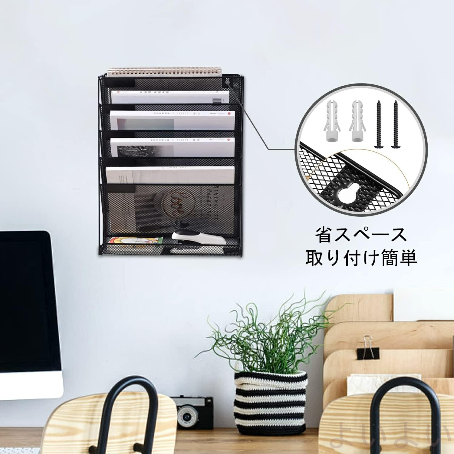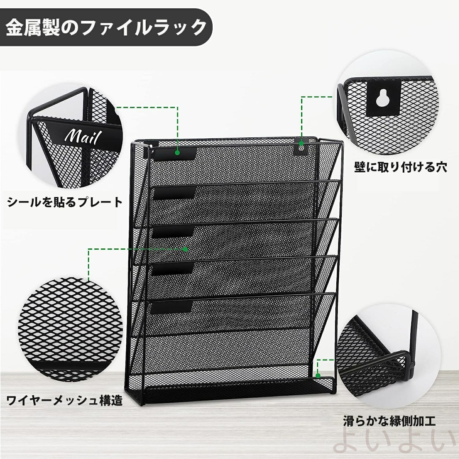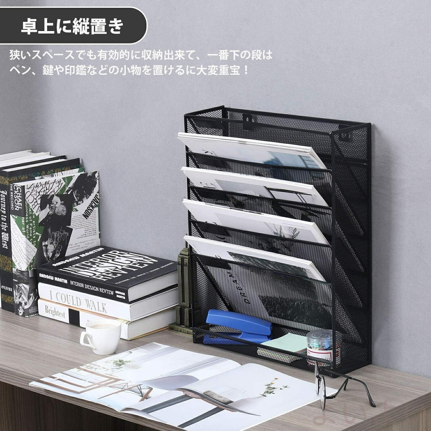 壁掛けファイルラック 6段 多機能壁掛 日用品雑貨 文房具 手芸 続々登場 ブラック グレー