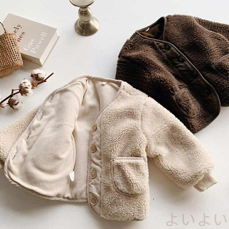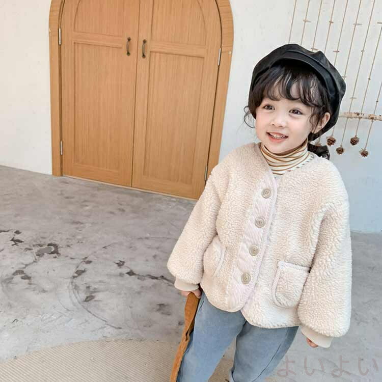 長袖 ボアジャケット 子供服 ボタン開 キッズ ベビー マタニティ 新登場! ベージュ ブラウン 80 90 100 110 120 130 140