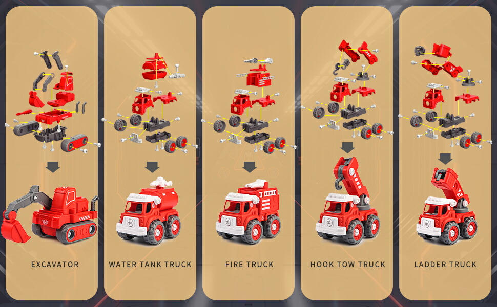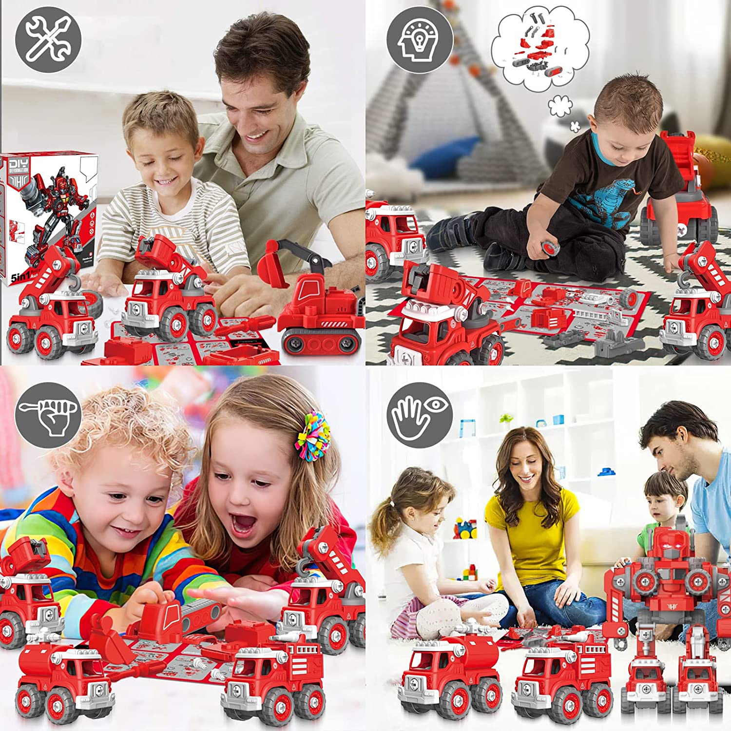 5 in 1変形ロボット 建設車両 ロ おもちゃ ゲーム 豊富 グリーン レッド イエロー
