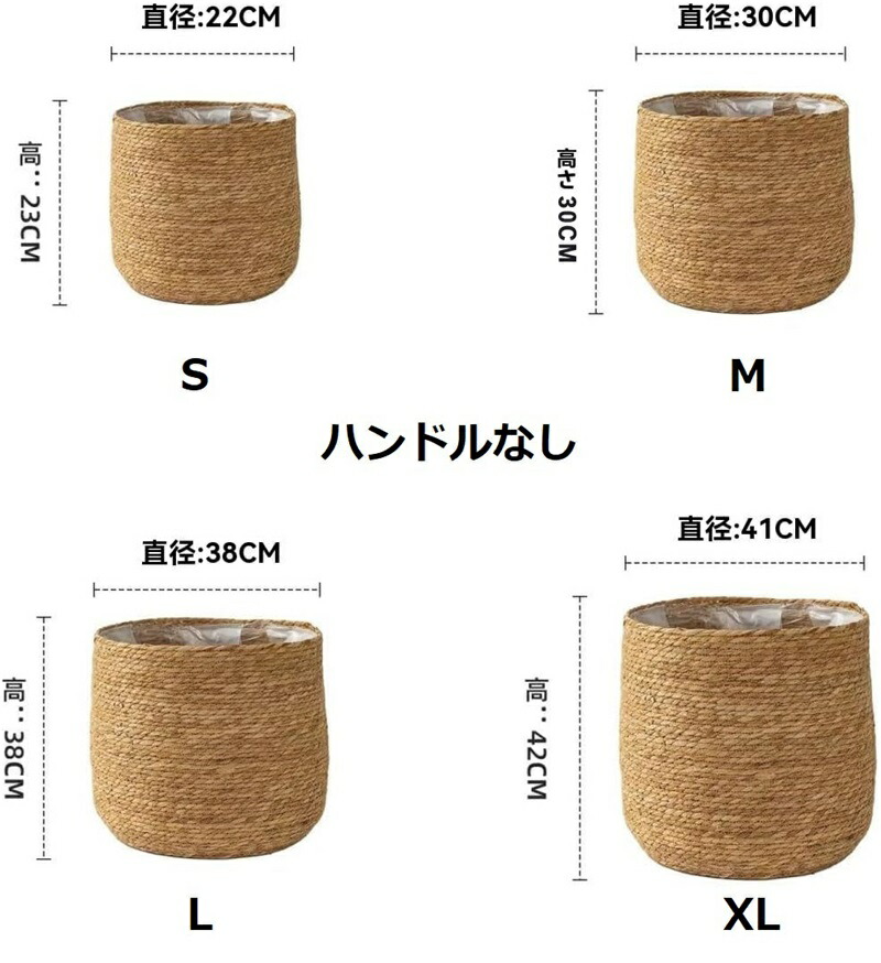 収納バスケット 鉢カバー 北欧風 観葉 ハンドル付き ハンドルなし S M L XL