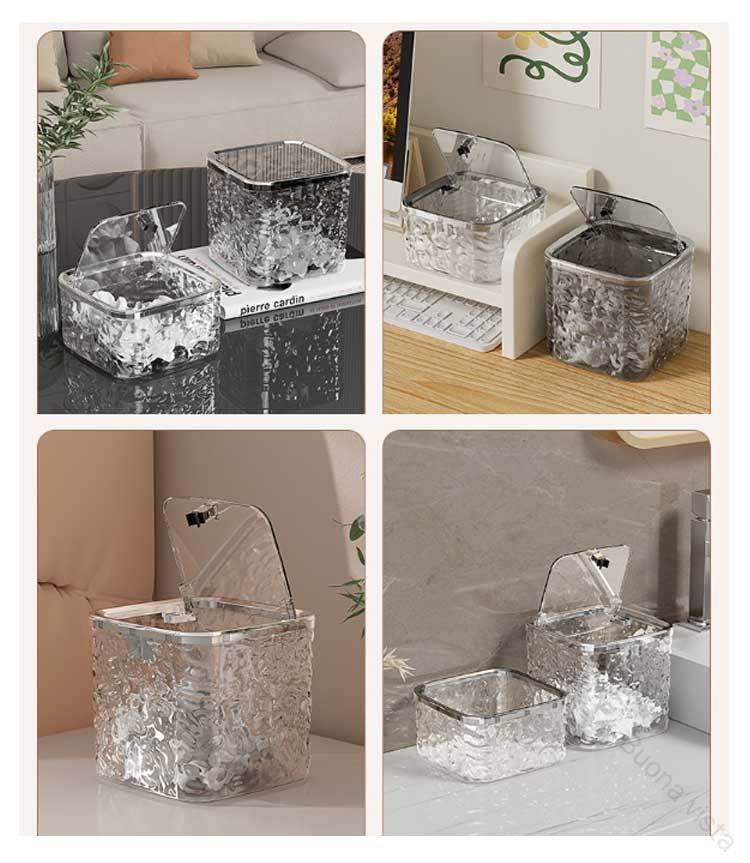 正方形 ゴミ箱 卓上収納 透明 卓上ゴ Mサイズ蓋なし透明 Mサイズ蓋つき透明 Lサイズ蓋なし透明 Lサイズ蓋つき透明 Lサイズ蓋つき透明グレー Mサイズ蓋つき透明グレー