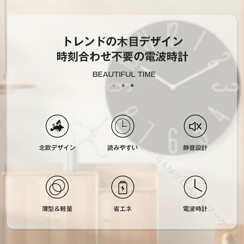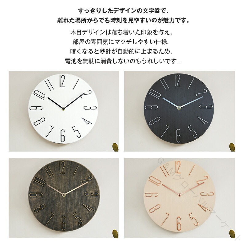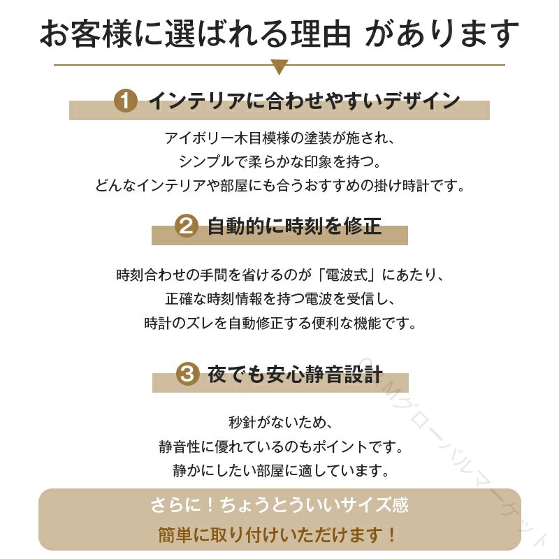 電波時計 壁掛け 時計 おしゃれ 北欧 ベージュ ホワイト ブラック ゴールド ブラウン