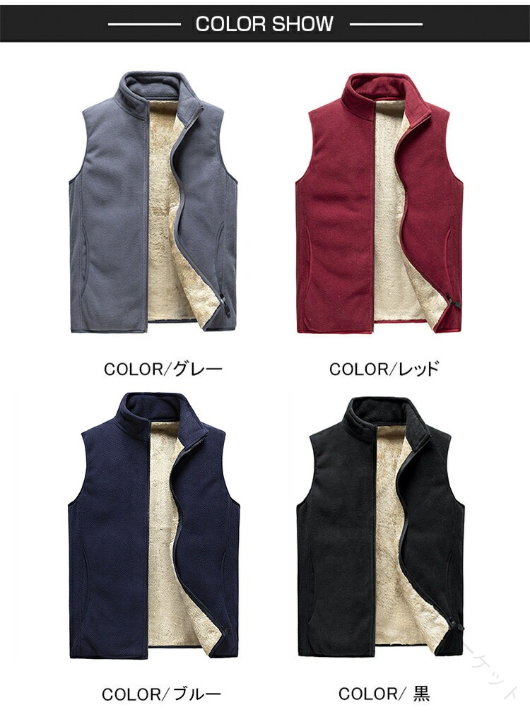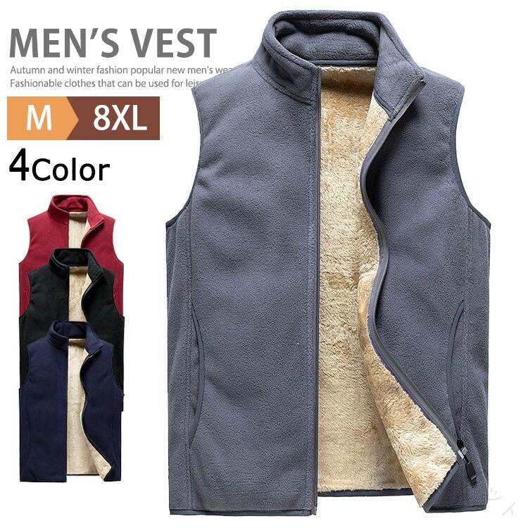 フリースベスト メンズ 暖かい 裏起毛 メンズファッション 豊富な品揃え M L XL 2XL 3XL 4XL 5XL 6XL 7XL 8XL 黒 ブルー